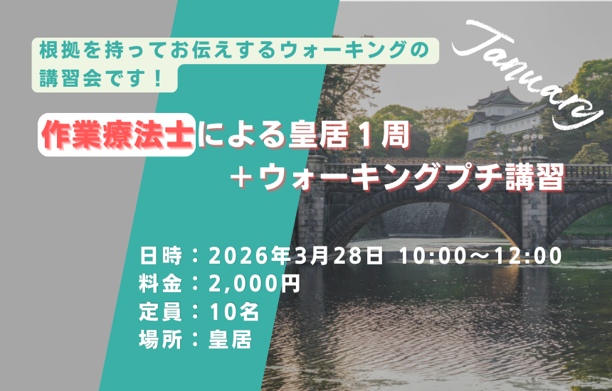 病院や老人施設で経験豊富なリハビリ職種が解説し、実践として皇居1周を歩きます!